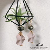 マットで優しいピンクのヒラヒラパーツにアンティークな石を組み合わせました♡