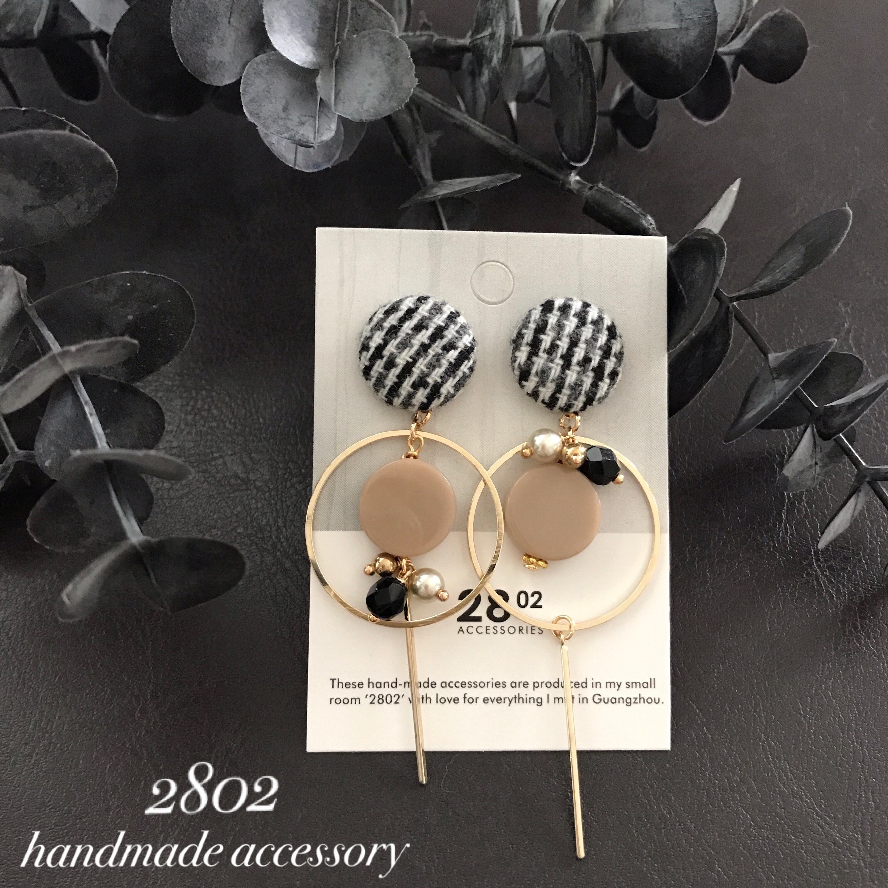 白黒ツイードに優しいベージュのアクリルパーツを合わせました。