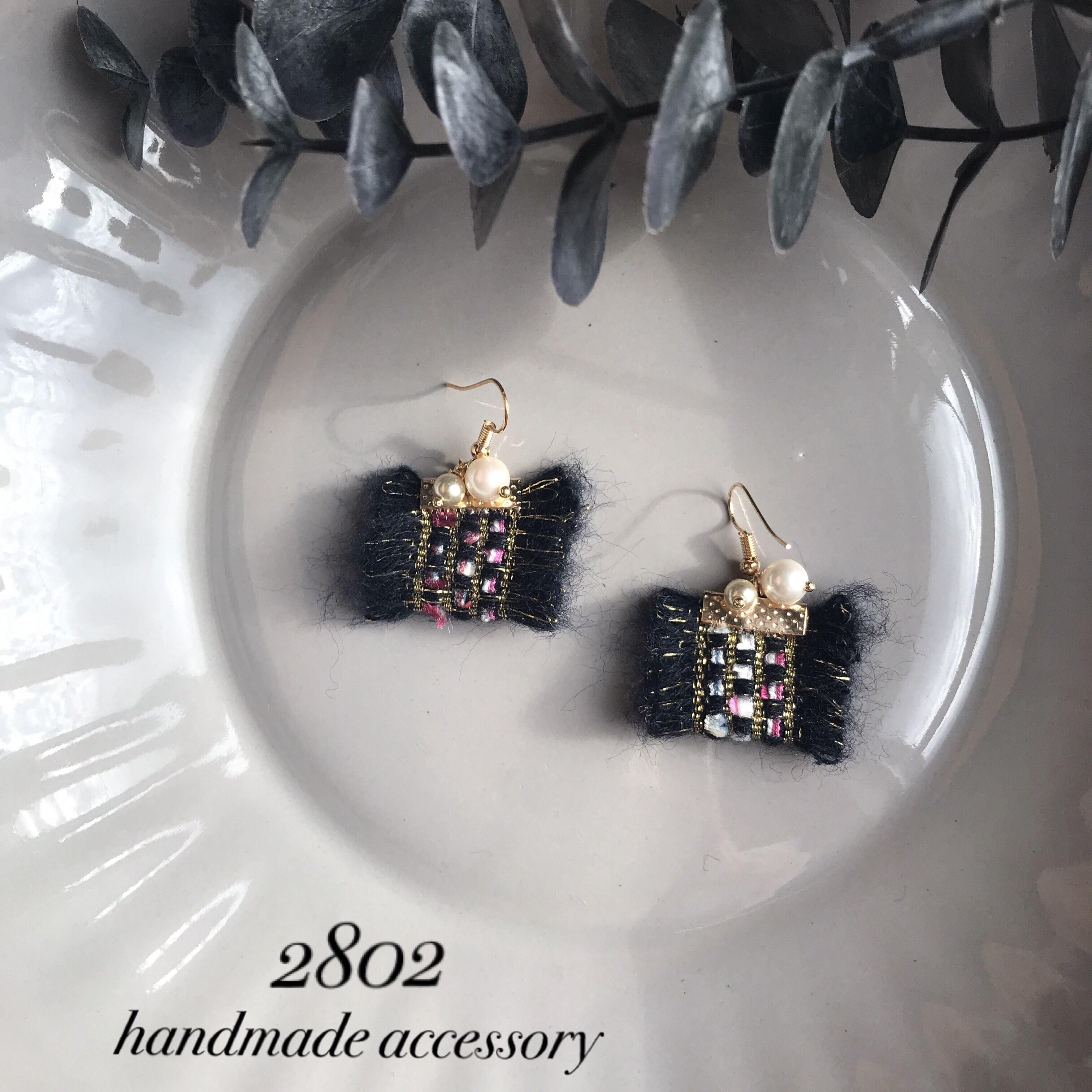 ツイードリボンからタッセルを作り、上品なパールを組み合わせました!