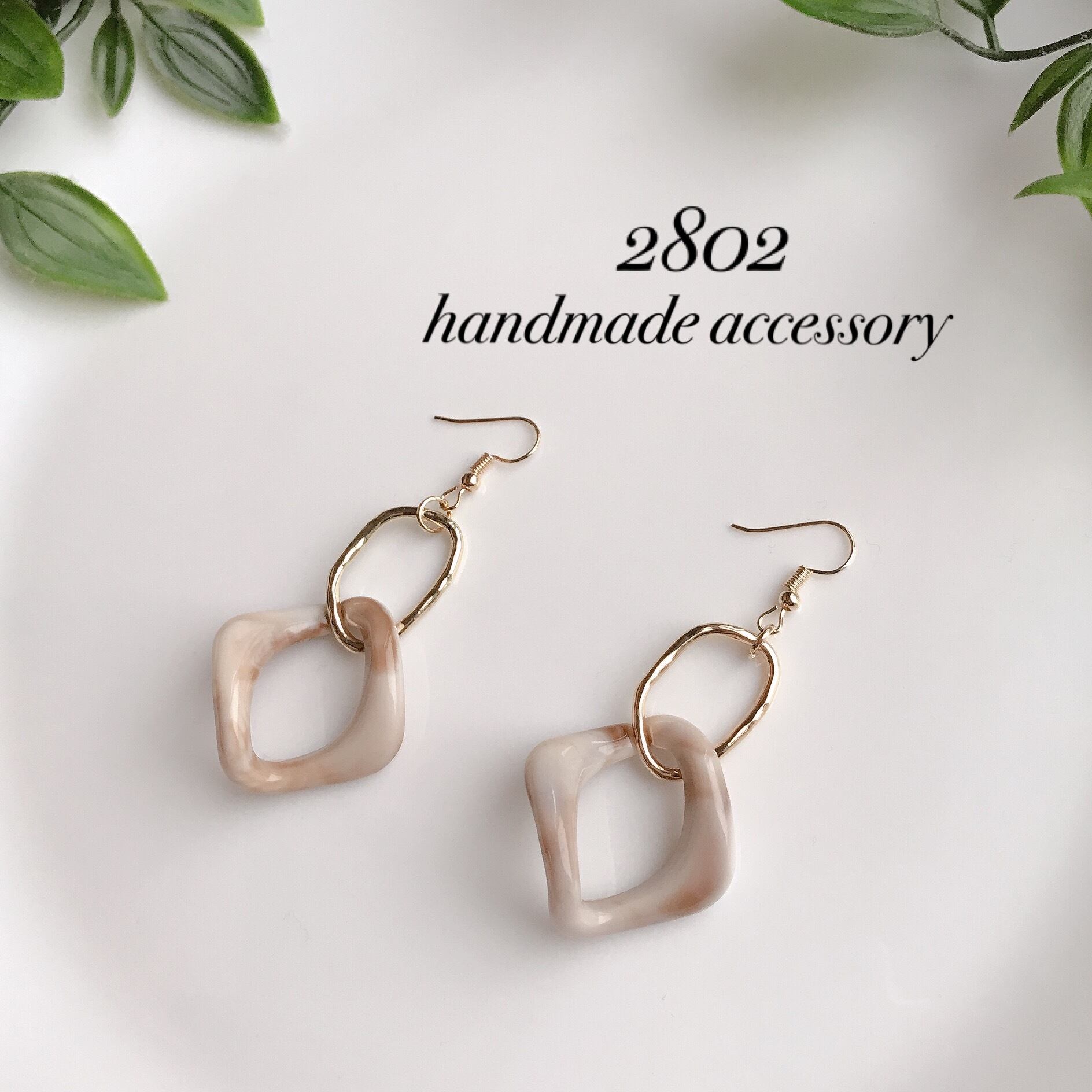 ミルクティーのような優しい色合いとゆがみパーツがオシャレなデザイン。